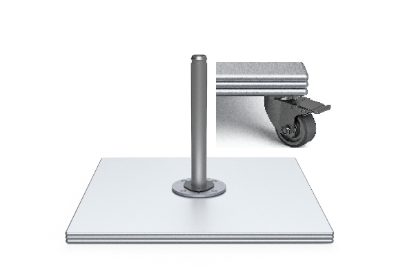 Mounting options for the Aurora Umbrellas include semi-permanent, permanent, and non-permanent weighted bases suitable for any location.
